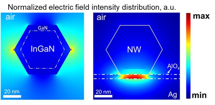 Работа включала три ключевых направления: синтез методом молекулярно-пучковой эпитаксии нитевидных нанокристаллов со встроенными квантовыми ямами InGaN; разработку технологии металл-диэлектрических подложек с атомарно гладкой поверхностью; комплексную характеризацию гибридной структуры с её дальнейшей оптимизацией для получения лазерного излучения.